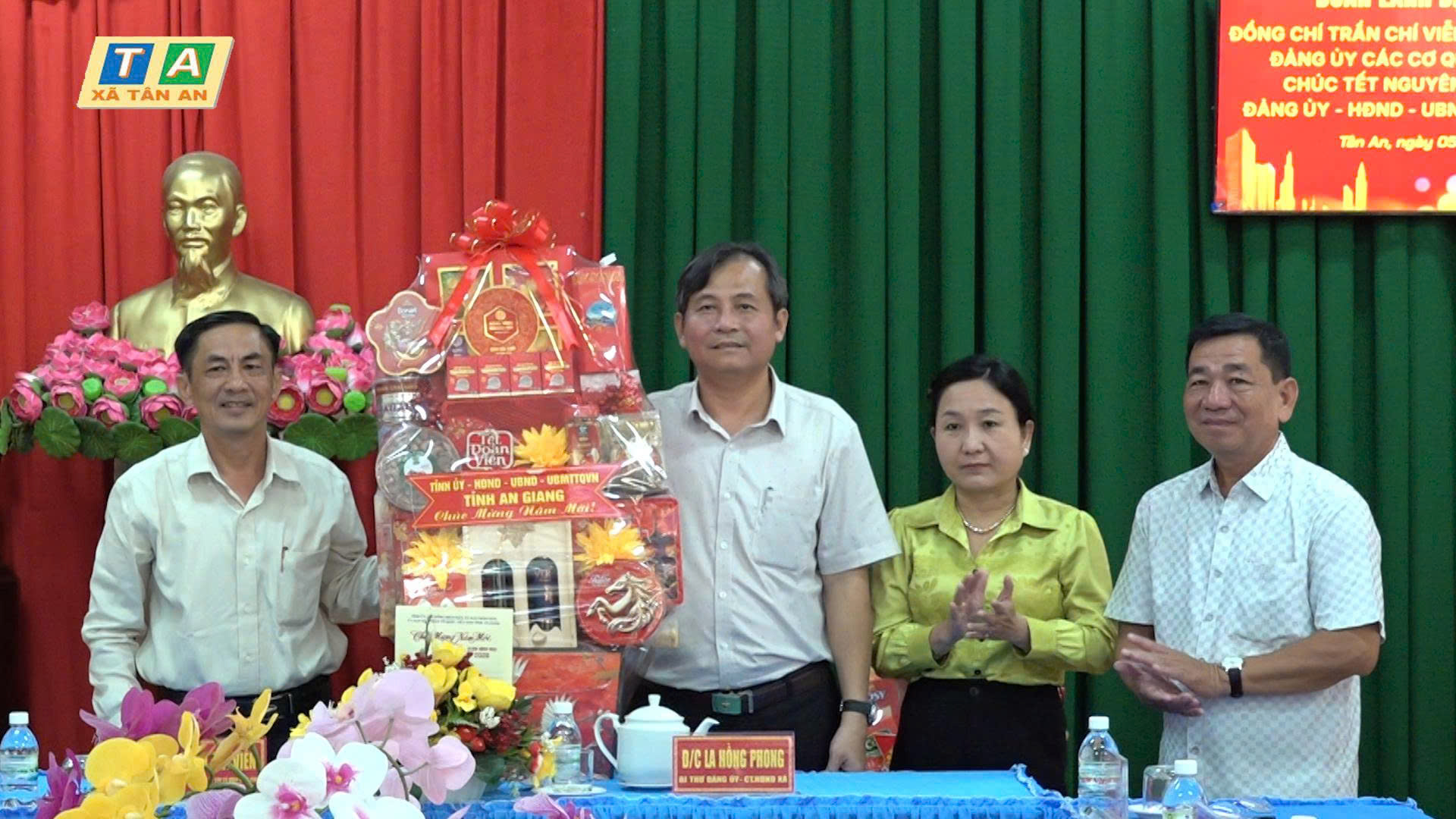 Sáng ngày 05/02/2026, Đoàn công tác Đảng ủy các cơ quan Đảng tỉnh An Giang do Đồng chí Trần Chí Viễn, Tỉnh ủy viên – Phó Bí thư Đảng ủy làm Trưởng đoàn đến thăm và chúc tết Đảng ủy – HĐND – UBND – UBMTTQVN xã Tân An. Tiếp và làm việc với Đoàn có đồng chí La Hồng Phong, Bí thư Đảng ủy – Chủ tịch HĐND xã, đồng chí Võ Thụy Ý Như, Phó Bí thư Thường trực Đảng ủy xã; đồng chí Đỗ Văn Leo, Phó Bí thư Đảng ủy – Chủ tịch UBND xã.