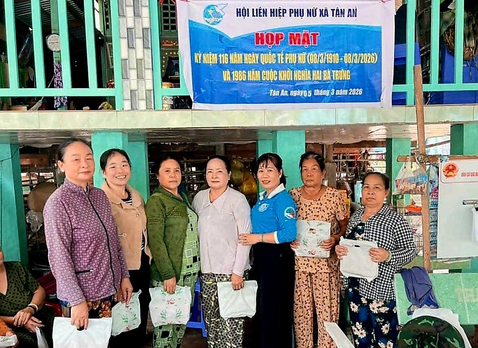 Ngày 05/3/2026, Hội liên hiệp Phụ nữ xã Tân An tổ chức 03 tuyên truyền kỷ niệm 116 năm ngày Quốc tế phụ nữ 8/3 và 1986 năm cuộc khởi nghĩa hai Bà Trưng cho hội viên phụ nữ 3 ấp Tân Phú B, Long Hòa và ấp Núi Nổi.
