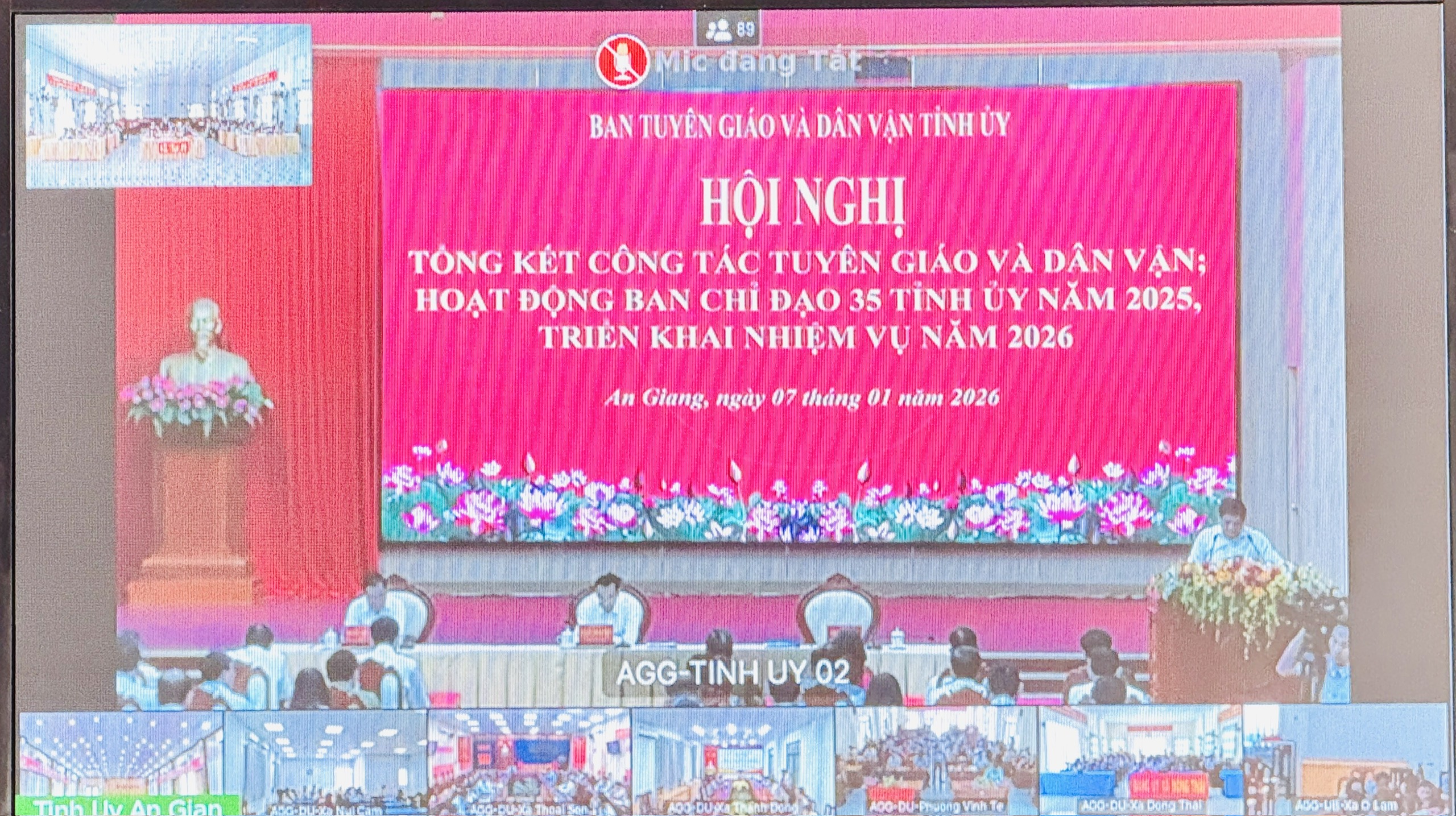 Chiều ngày 07/01/2026, Ban Tuyên giáo và Dân vận Tỉnh ủy An Giang tổ chức hội nghị tổng kết công tác tuyên giáo và dân vận; hoạt động của Ban Chỉ đạo 35 Tỉnh ủy năm 2025, triển khai nhiệm vụ năm 2026. Hội nghị do đồng chí Nguyễn Thanh Nhàn, Phó Bí thư Thường trực Tỉnh ủy, Chủ tịch HĐND tỉnh và đồng chí Tống Phước Trường, Ủy viên Ban Thường vụ Tỉnh ủy, Trưởng Ban Tuyên giáo và Dân vận Tỉnh ủy chủ trì.