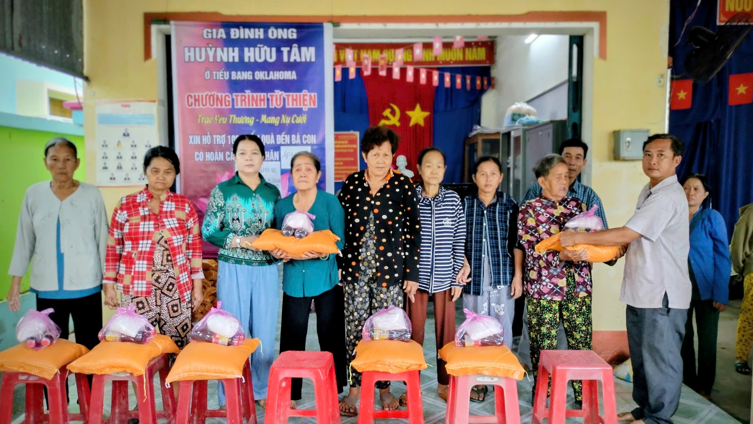 Đợt này, có 100 phần quà được trao cho người dân, mỗi phần quà gồm 10 kg gạo, đường, nước tương; mỗi phần quà 140.000 đồng. Tổng trị giá 14 triệu đồng, gia đình anh Huỳnh Hữu Tâm, Việt kiều hỗ trợ bà con nghèo, góp phần thực hiện tốt công tác an sinh xã hội trên địa bàn xã.