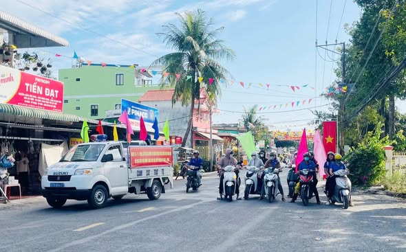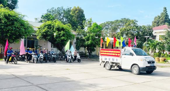 Với chủ đề “Cử tri trẻ với Ngày hội non sông” về cuộc bầu cử đại biểu Quốc hội và bầu cử đại biểu Hội đồng nhân dân các cấp; xe diễu hành toàn xã tuyên truyền nhiều nội dung phong phú về ý nghĩa, tầm quan trọng của cuộc bầu cử đại biểu quốc hội khóa XVI và đại biểu HĐND các cấp nhiệm kỳ 2026 – 2031; ngày 15/3/2026, cử tri cả nước đi bầu cử đại biểu Quốc hội khóa XVI và đại biểu Hội đồng nhân dân các cấp nhiệm kỳ 2026 - 2031; phát huy quyền làm chủ của Nhân dân thông qua bầu cử dân chủ, công khai, minh bạch; tham gia bầu cử đại biểu Quốc hội khóa XVI và đại biểu Hội đồng nhân dân các cấp nhiệm kỳ 2026 - 2031 là quyền lợi, nghĩa vụ thiêng liêng của mỗi công dân; sáng suốt lựa chọn người xứng đáng đại diện cho Nhân dân,…