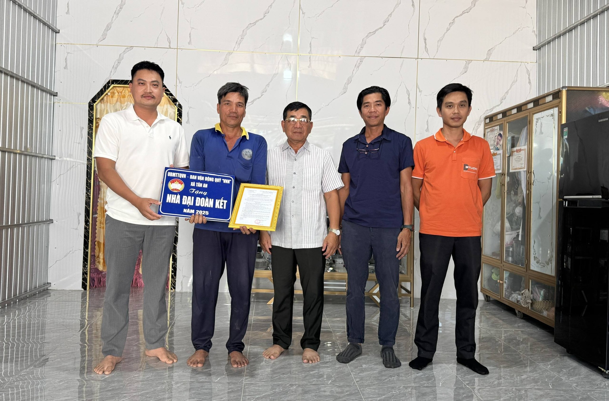 Chiều ngày 19/12/2025, UBMTTQVN xã Tân An phối hợp UBND xã, các hội đoàn thể xã và Ban nhân dân ấp Núi Nổi tổ chức lễ bàn giao nhà đại đoàn kết cho hộ gia đình có hoàn cảnh khó khăn về nhà ở. Đến dự có ông Đỗ Văn Leo, Phó Bí thư đảng ủy - Chủ tịch UBND xã; bà Huỳnh Thị Gẩm, Phó Chủ tịch UBMTTQVN xã – Chủ tịch Hội Liên hiệp phụ nữ xã.