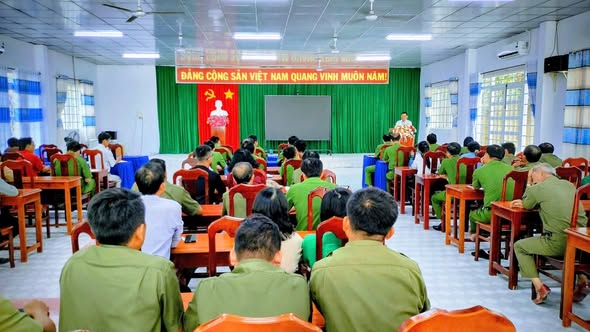 Tại Hội nghị, Trung tá Trang Hoàng Vân, Trưởng Công an xã triển khai 08 phương án xử lý tình huống có thể xảy ra trong ngày bầu cử; báo cáo sơ lượt về tình hình ANTT hiện tại; công tác chế độ và thời gian báo cáo tiến độ ngày bầu cử; công tác trực Ban, trực chiến; phương tiện tuần tra, đảm bảo ANTT ngày bầu cử. Trạm y tế đưa ra phương án phân công cán bộ, nhân viên y tế, cơ số thuốc, xe cứu thương để phục vụ trong ngày bầu cử, đảm bảo xử lý kịp thời những tình huống có thể xảy ra về sức khỏe của cử tri, cũng như các thành viên phục vụ bầu cử,…