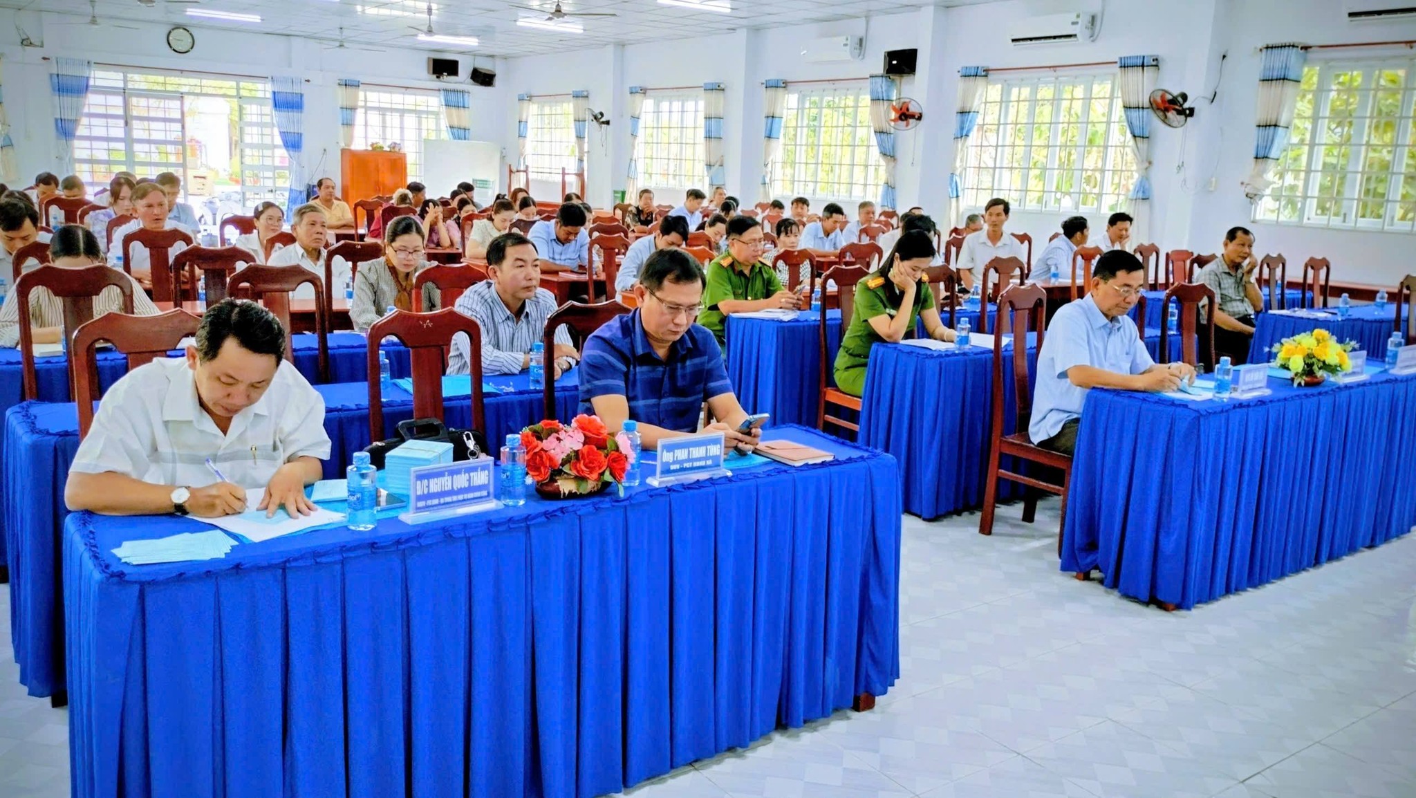 Tại điểm cầu xã Tân An, có Phó Bí thư thường trực Đảng ủy Võ Thụy Ý Như; ông Đỗ Văn Leo, Phó Bí thư Đảng ủy - Chủ tịch UBND – Chủ tịch UBBC xã; Ủy ban Mặt trận Tổ quốc Việt Nam xã; thành viên các tổ chức phụ trách bầu cử; cơ quan tham mưu, giúp việc công tác bầu cử.